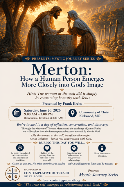 Flyer for this event : https://centeringprayerstl.org/wp-content/uploads/2026/04/MJS-Merton-Frank-Krebs.png